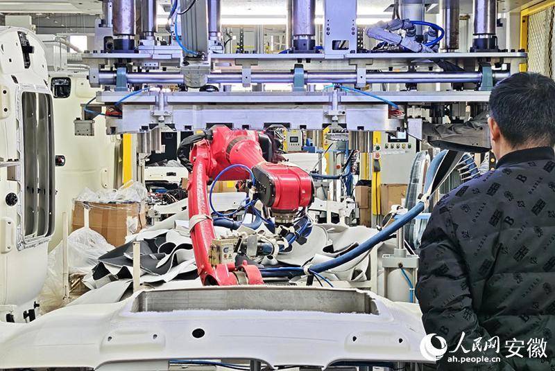 在吴圩镇一家汽车零部件企业里,工东谈主正在看着机械臂加工零件。东谈主民网记者 周坤摄